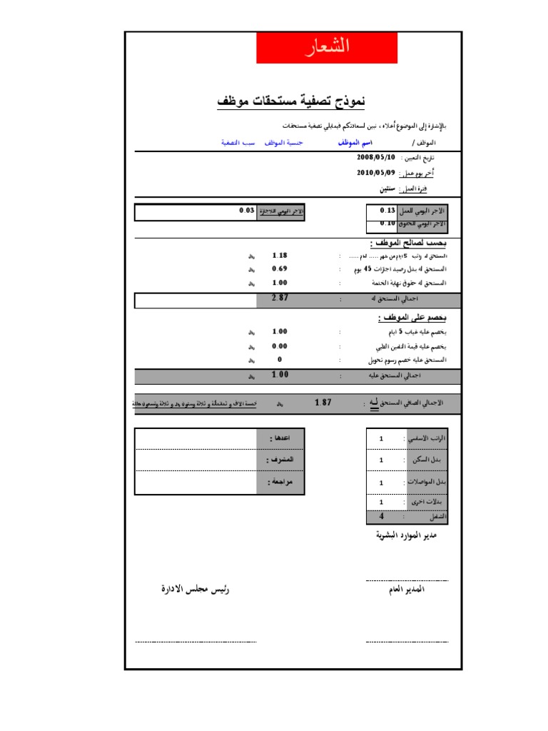 نموذج احتساب نهاية الخدمة